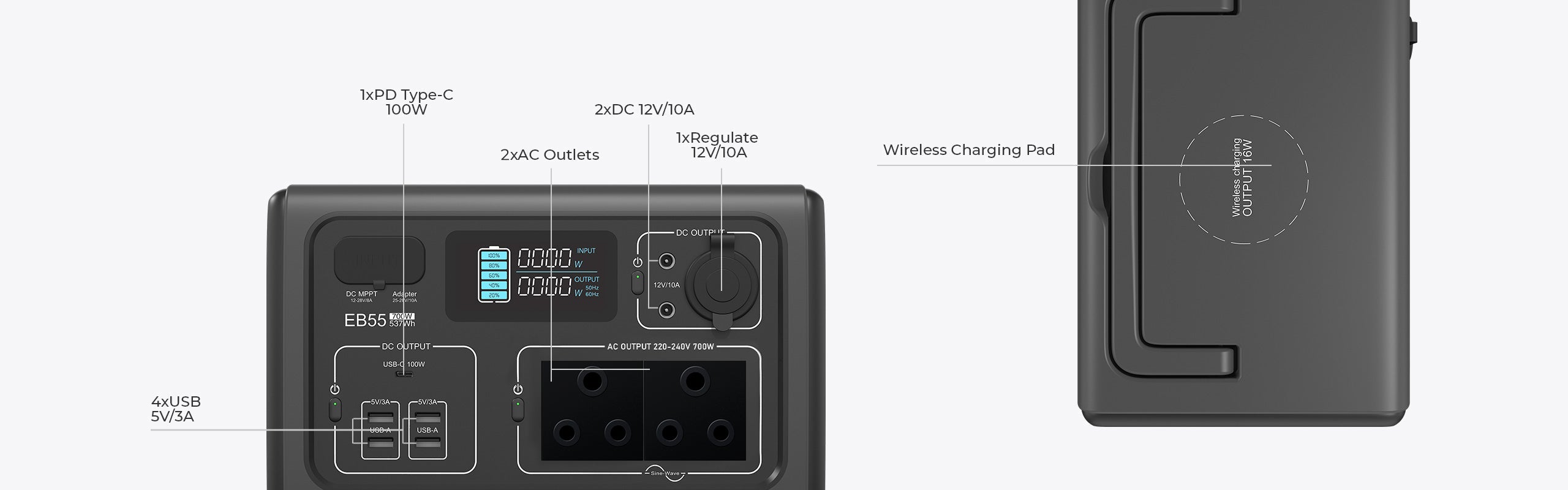 Multiple DC & AC Outputs, Versatile Recharging